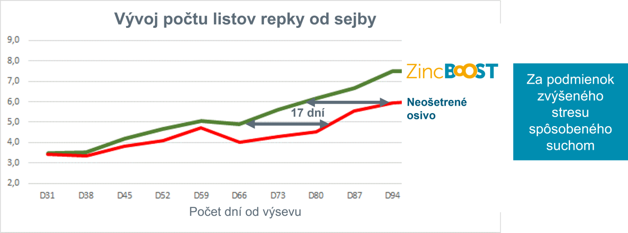 Zinok je životne dôležitá mikroživina nevyhnutná pre optimálny rast a vývoj rastlín repky. Priamo ovplyvňuje vitalitu rastlín s posilňujúcim účinkom, podporuje skorý vývoj koreňa a stimuluje produkciu biomasy. Zinc s boost efektom je patentovaná formulácia zinkového komplexu v tekutom roztoku s neutrálnym pH, určená pre ošetrenie osiva ozimnej repky. Všetky hybridy DEKALB® sú v aktuálnej sezóne štandardne morené dvojzložkovým fungicídnym moridlom Scenic® Gold + Zinc s boost efektom v základnej cene.